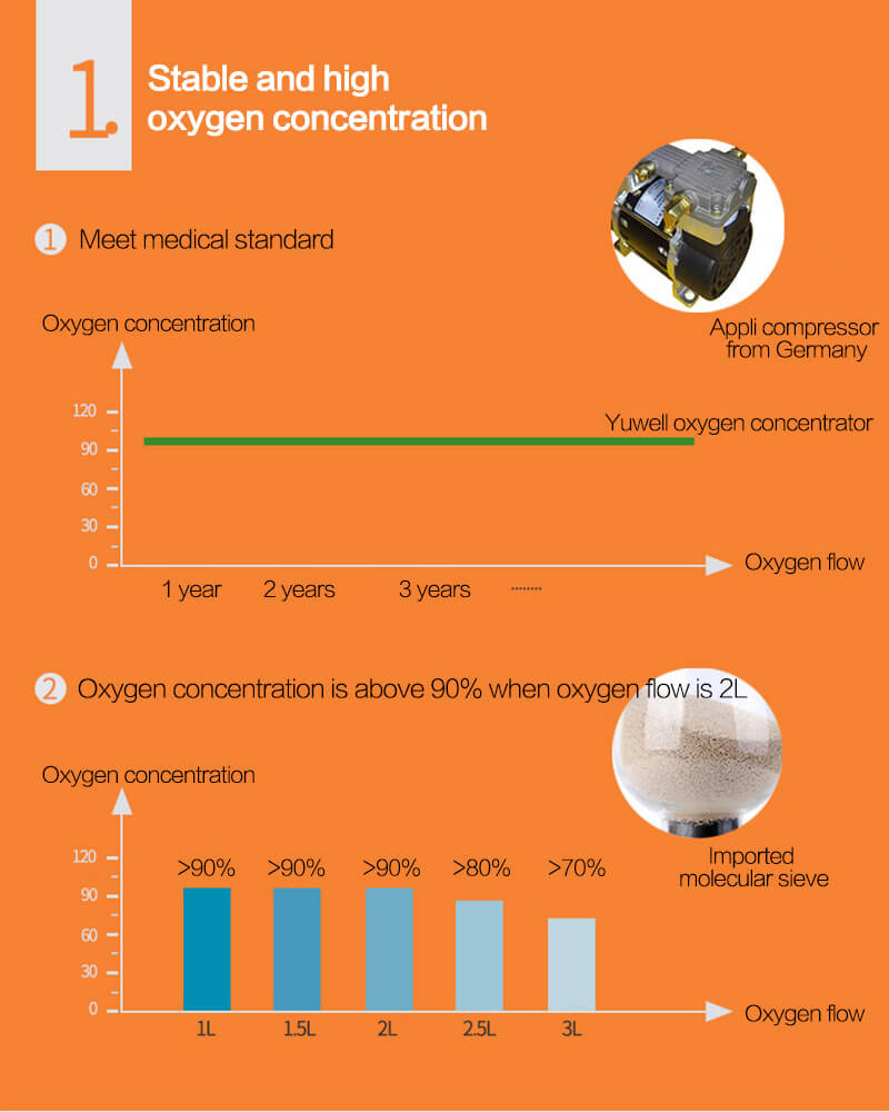 Nồng độ oxy của máy tạo oxy gia đình yuwell YU600 ổn định theo thời gian sử dụng. Với lưu lượng lớn lên tới 3 Lít/phút thì nồng độ có thể đạt đến trên 90% Oxy tinh khiết, hỗ trợ cho người già người bệnh hen suyễn, các chứng liên quan đến phổi..vvvv
