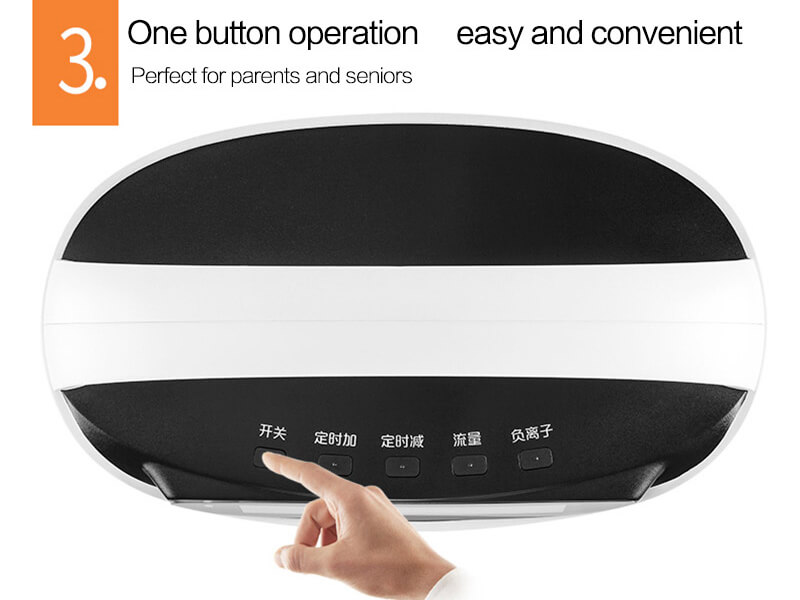 Máy có tích hợp remote nhỏ gọn, dễ dàng điều khiển mà không cần tác động đến máy. Trên điều khiển có tích hợp các nút như bật tắt máy, tăng thời gian hẹn giờ tắt máy, giảm thời gian hẹn giờ, điều chỉnh lưu lượng và bật tắt tính năng ion.